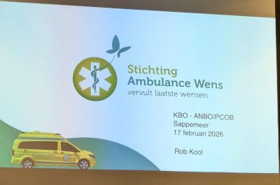 De gepensioneerde politieman Rob Kool vertelde ons aan de hand van een dia presentatie hoe de Stichting Ambulance Wens werkt.