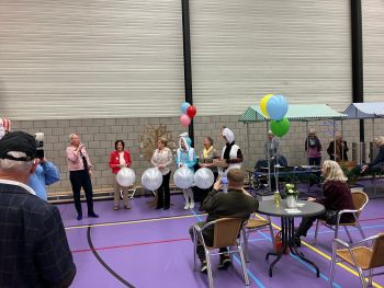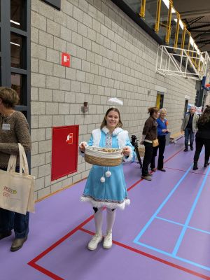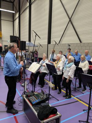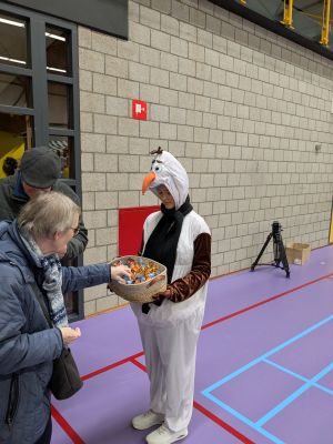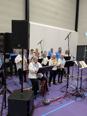 Het koor de Woldvinken brachten vele liedjes ten gehore en een paar meisjes in een leuke outfit boden de bezoekers bonbons en snoep aan.