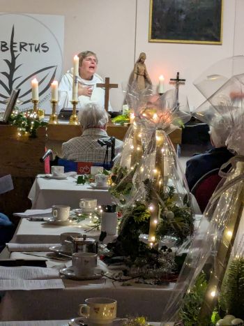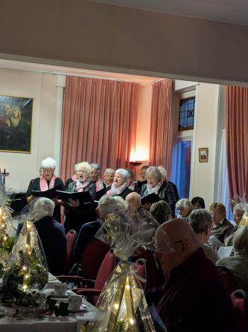 Er waren ruim 70 personen aanwezig met voor de eerste keer de seniorengroep om Kerstmis dit jaar samen te vieren. Na even gezellig bijgepraat te hebben onder het genot van een kopje koffie en een heerlijk stuk kerststol vierden we samen een woorddienst waarin Pastor Nellie Hamersma, Herman Scholtens en Lina Scholalberts voorgingen.