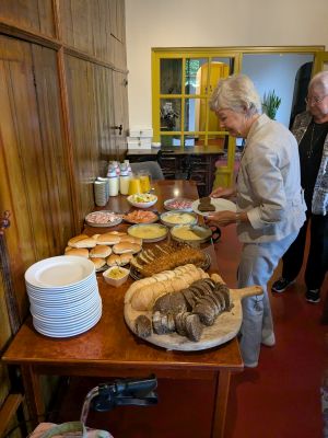 Tegen twee uur stond een uitgebreide lunch voor 21 personen voor ons klaar. Met veel zelf gemaakte producten. Bijzonder lekker...