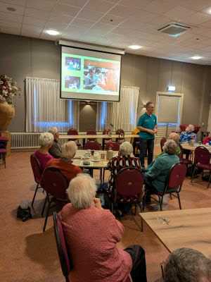 De gepensioneerde politieman Rob Kool vertelde ons aan de hand van een dia presentatie hoe de Stichting Ambulance Wens werkt.