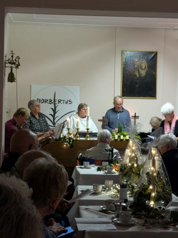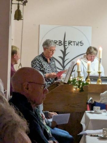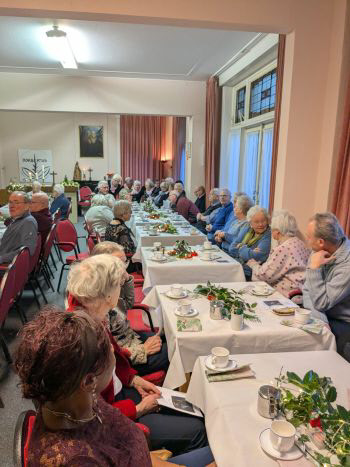 Er waren ruim 70 personen aanwezig met voor de eerste keer de seniorengroep om Kerstmis dit jaar samen te vieren. Na even gezellig bijgepraat te hebben onder het genot van een kopje koffie en een heerlijk stuk kerststol vierden we samen een woorddienst waarin Pastor Nellie Hamersma, Herman Scholtens en Lina Scholalberts voorgingen.