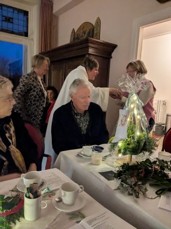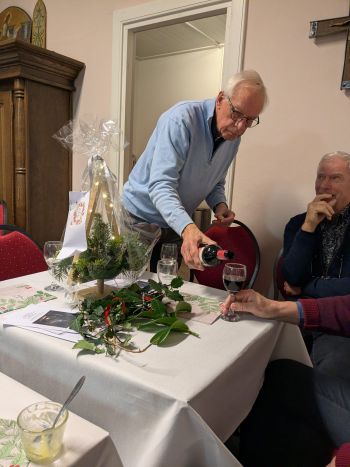 Op het einde van de bijeenkomst was er een dankwoord en een presentje in de vorm van een kerststukje voor de magazine bezorgers en de bestuursleden.